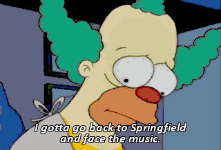 I gotta go back to Springfield and face the music. Can you loan me bus fare? Hey, hey, hey, hey, hey! Well, what you didilly-doing, neighbor? Putting speed holes in my car. Makes it go faster.