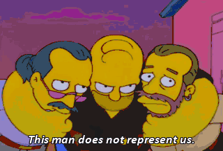 This man does not represent us. All right, boys, set your nightsticks on whomp. Uh, mine's stuck on twirl. Oh, for the love of-- There. Now let's crack some skulls.