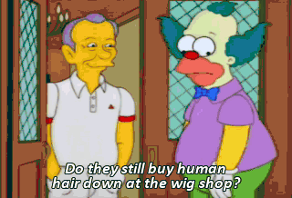 Do they still buy human hair down at the wig shop? Krusty, you wanna stay for dinner? Nah, sorry. Ah, that's too bad, 'cause tonight my guests will be Dr. Carl Sagan,