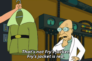That's not Fry's jacket. Fry's jacket is red. That's your jacket, an off-the-rack, lime-green affair. But Fry-- His jacket-- And when I woke up, it was on me!