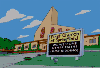 The blood of Christ. Hey, save some for the rest of us, alkie! Don't bogart our Lord! I'm not a drunk! (CHUCKLES) Now, Marge, we do not judge here. Today's service is concluded.