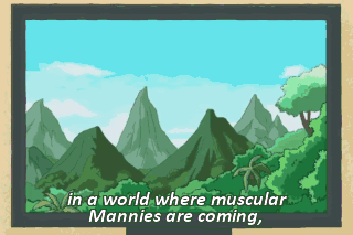 in a world where muscular Mannies are coming, and they're coming strong, there's only three unmuscular Michaels. Get down. Hurry. Run.