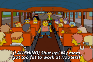 (LAUGHING) Shut up! My mom got too fat to work at Hooters!