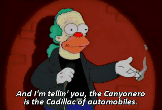 And I'm tellin' you, the Canyonero is the Cadillac of automobiles. That's Canyonero. Wait! Where you going? I still got plenty of beefs.