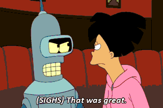(SIGHS) That was great. Shut up. Come over here. Remember, love between a human and a robot is taboo. We can't tell anyone, not even our co-workers.