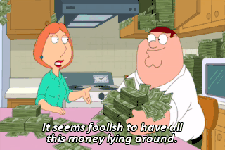 It seems foolish to have all this money lying around. Oh, you'd rather have it down at the bank where the Jewish guys can leer at it? (LAUGHING LECHEROUSLY) Yeah!
