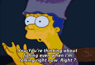 You-You're thinking about fishing even when I'm talking right now. Right ?