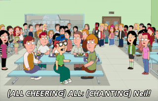 (ALL CHEERING) ALL: (CHANTING) Neil! Neil is such a perfect name for a gay guy.