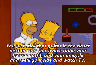 You just stick that guitar in the closet next to your shortwave radio your karate outfit, and your unicycle and we'll go inside and watch TV. What's on? It doesn't matter. Open up! Open up!