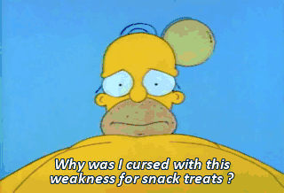 Why was I cursed with this weakness for snack treats ? Well, from now on, exercise every morning, Homer.