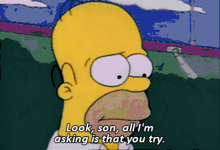 Look, son, all I'm asking is that you try. Okay, I'll try. Anybody can try ! I want you to win !