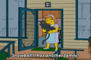 Snowball II has another family! This is worse than when we thought Mom was having an affair. Turned out she was just going to the library to cry. Now she just bottles up her misery like a normal mom.