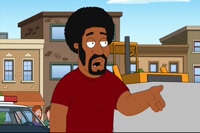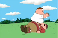 (HONKS HORN) Hang on, Quagmire, I gotta kick this guy's ass.