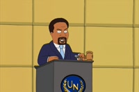 We've been here two minutes, and already you've destroyed America. Oh, my Lord. Look who's here.