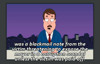 was a blackmail note from the victim threatening to expose the mayor in a corruption scandal unless the victim was paid off.