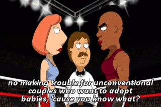 no making trouble for unconventional couples who want to adopt babies, 'cause you know what?