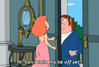 Hi. Can I take my tie off yet?