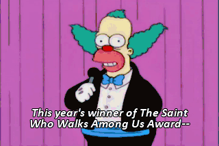 This year's winner of The Saint Who Walks Among Us Award--