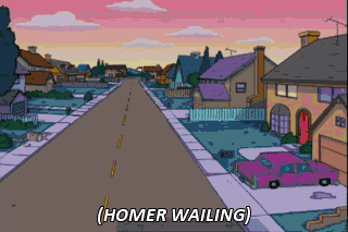 (HOMER WAILING) (TIRES SCREECHING) (HONKING) Slowly, slowly. The RV dealer is across town under that gorilla blimp. How do you know that's their blimp? Duh! It's Kamper Kong. (ROARS)