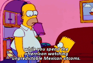 while you spend the afternoon watching unpredictable Mexican sitcoms. ¡Ay, el estÓmago! Run along, you little scamp.