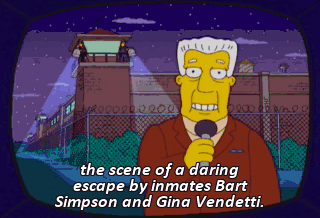 the scene of a daring escape by inmates Bart Simpson and Gina Vendetti.