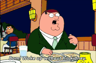 Bam! Woke up without his kidney.