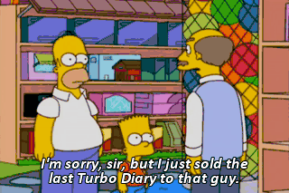 I'm sorry, sir, but I just sold the last Turbo Diary to that guy.