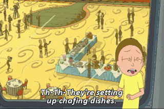 Th-Th-They're setting up chafing dishes.