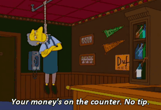 Your money's on the counter. No tip. Oh, you miserable bastard!