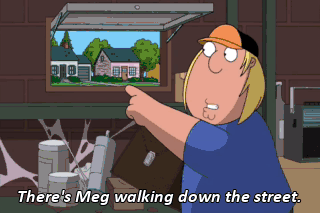 There's Meg walking down the street. Hey, Meg! Hanging out with all your friends? (BOTH LAUGHING) Hey, whale, the ocean's that way! That's a good one, too.
