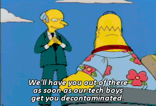 We'll have you out of there as soon as our tech boys get you decontaminated.