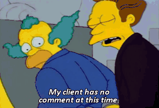 My client has no comment at this time. I didn't do it. Krusty the Clown, how do you plead ?