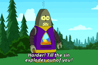 Harder! Till the sin explodes out of you! Mmm. Mercy. Okay, the Lord's work is done.