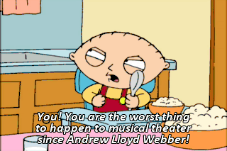 You! You are the worst thing to happen to musical theater since Andrew Lloyd Webber! And you! I just plain don't like you!
