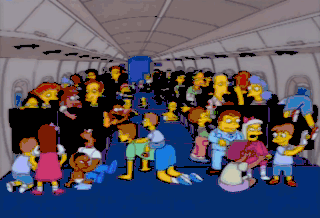 Happy anniversary, Mom and Dad. D'Oh! Okay, folks, this is your pilot speaking. If you'll look to the left side of the aircraft, you'll see Homer and Marge "Sampson,"
