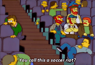 You call this a soccer riot? Come on, boys. Let's take 'em to school!