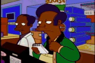 Hmm. Mrs. Simpson! You did not pay for this bottle of Colonel Kwik-E-Mart's Kentucky Bourbon.