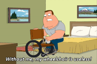 Without me, my wheelchair is useless! Without my wheelchair, I am useless!