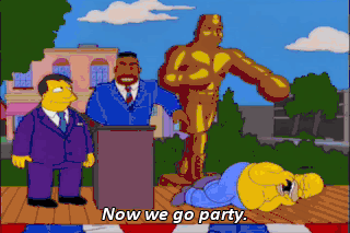 Now we go party. Homer, you've suffered a broken jaw. Broken jaw? Ohh!