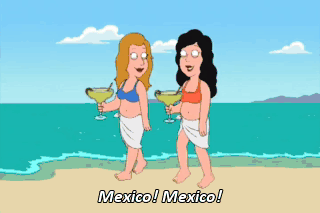Mexico! Mexico! I'm totally gonna wear a sombrero all the time when I get back home. Me, too. Mexico! Mexico!