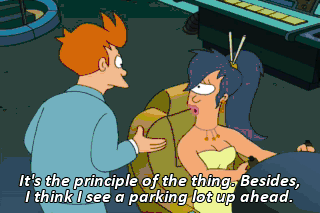 It's the principle of the thing. Besides, I think I see a parking lot up ahead. Father, I have asked you to join me on the White House roof...