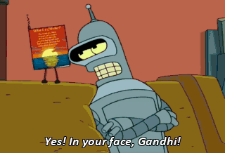 Yes! In your face, Gandhi! Hey! By the way, try washing your wrist sometime. Well, we can live without machines. I was in Webelos.