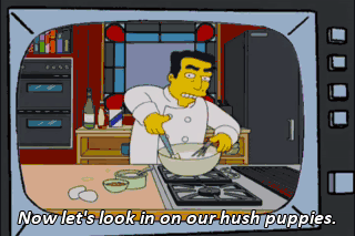 Now let's look in on our hush puppies. Ahh. Ah--