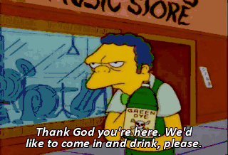 Thank God you're here. We'd like to come in and drink, please.