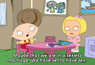 Maybe that we are in a sexless marriage. We have yet to have sex.