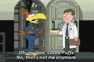 Oh, my God, Cocoa Puffs. No, that's not me anymore.