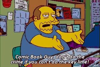 Comic Book Guy, don't do the crime if you can't do the key lime! (EXCLAIMING) How could this be any more humiliating?