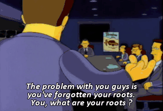 The problem with you guys is you've forgotten your roots. You, what are your roots ?