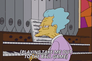 (PLAYING TAKE ME OUT TO THE BALL GAME)