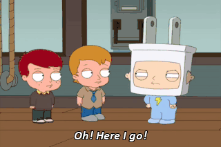 Oh! Here I go! There's only one solution It's in the Constitution We've got to pull the plug There he is! Quick, Peter, grab the video camera. All right, all right.